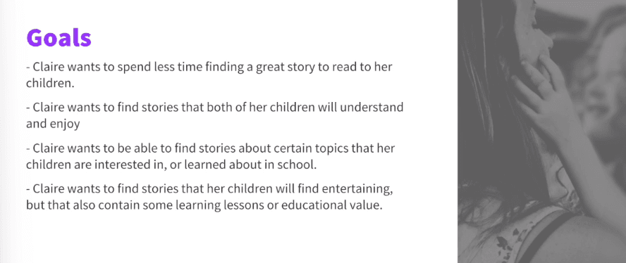 The goal is to help Tiny Tales enhance the experience for parents by quickly identifying books parents want to read to their children.