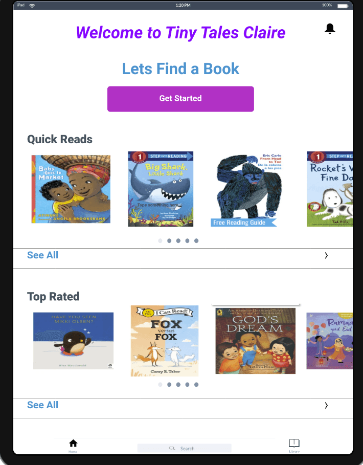 Tiny Tales is an e-book library that helps parents find books for kids.